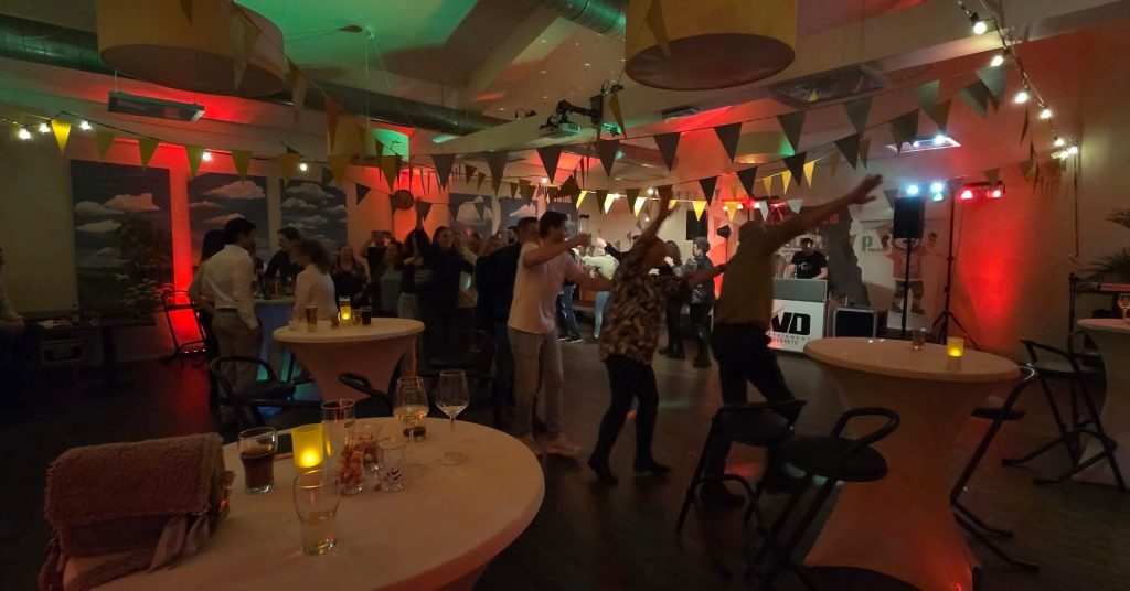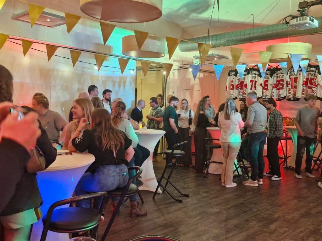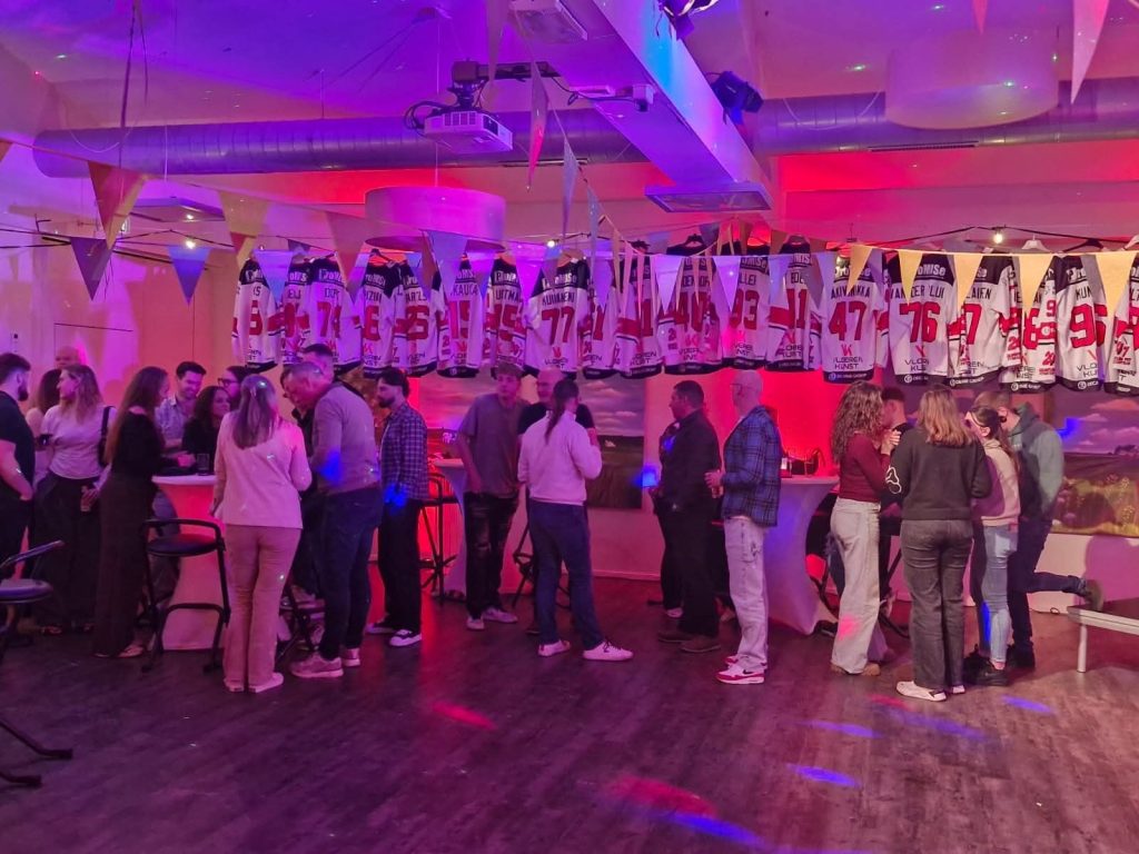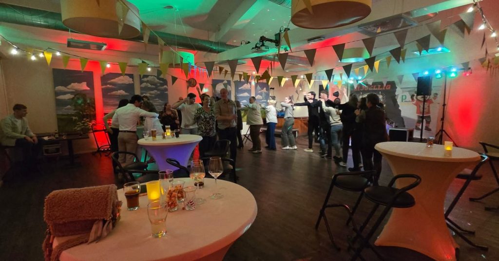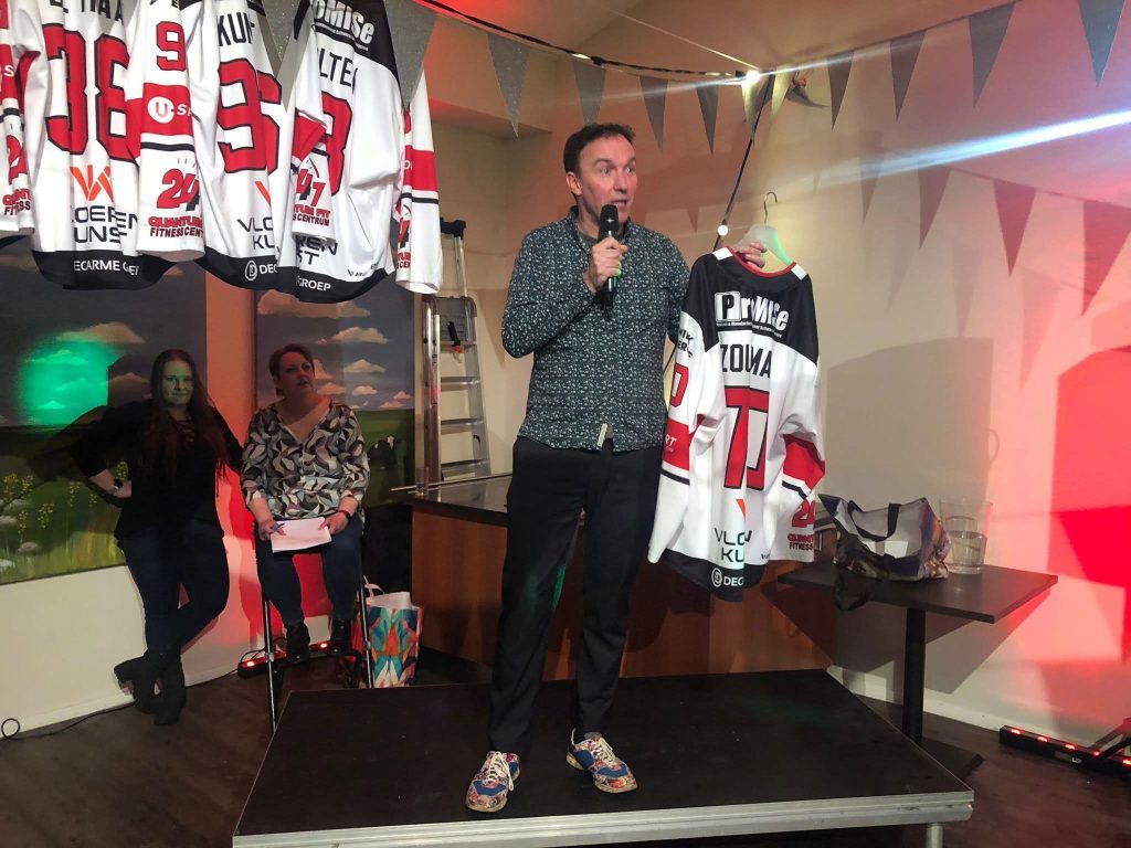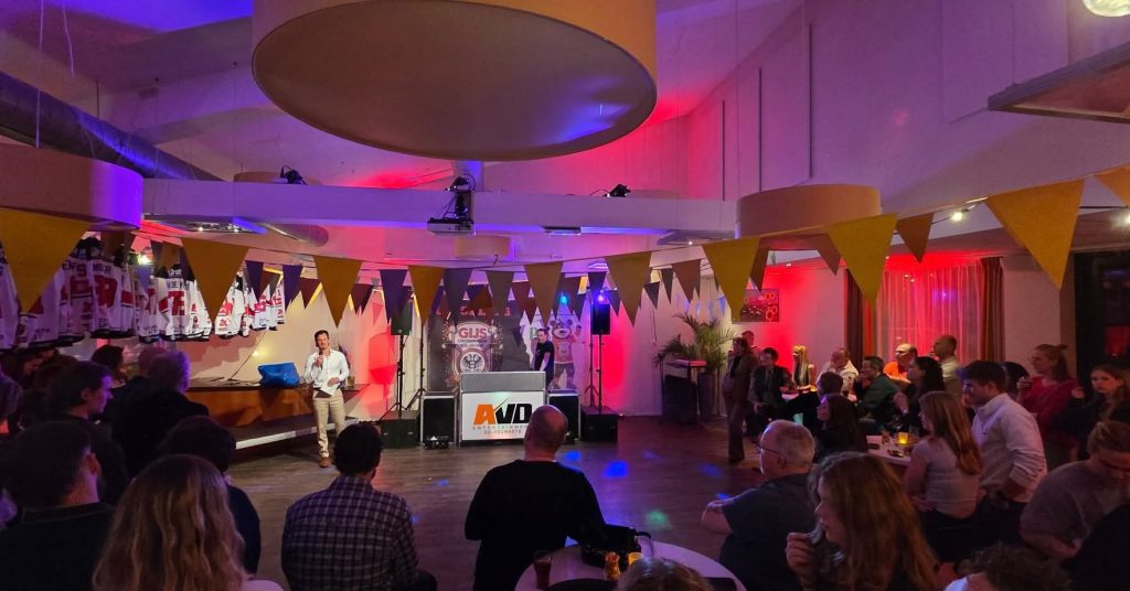Na het eten barstte het feest los met 𝗗𝗝 𝗔𝗹𝗲𝘅𝗮𝗻𝗱𝗲𝗿 achter de draaitafel. De avond startte met een woordje van 𝘃𝗼𝗼𝗿𝘇𝗶𝘁𝘁𝗲𝗿 𝗝𝗼𝗵𝗮𝗻 𝗱𝗲 𝗚𝗿𝗼𝗼𝘁, 𝗵𝗼𝗼𝗳𝗱𝗰𝗼𝗮𝗰𝗵 𝗣𝗶𝗽𝗽𝗼 𝗟𝗶𝗺𝗻𝗲𝗹𝗹 𝗲𝗻 𝗰𝗮𝗽𝘁𝗮𝗶𝗻 𝗚𝘂𝘆 𝗞𝘂𝗻𝘀𝘁. Daarna volgde de veiling van de uitshirts.